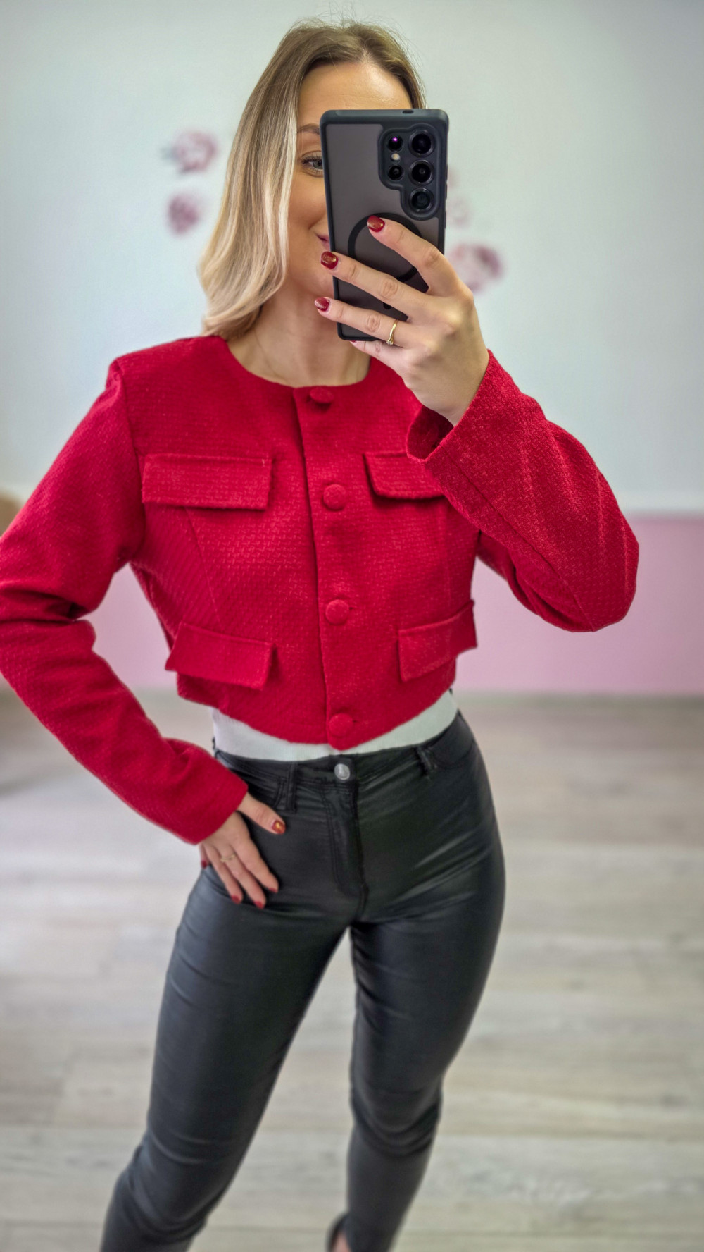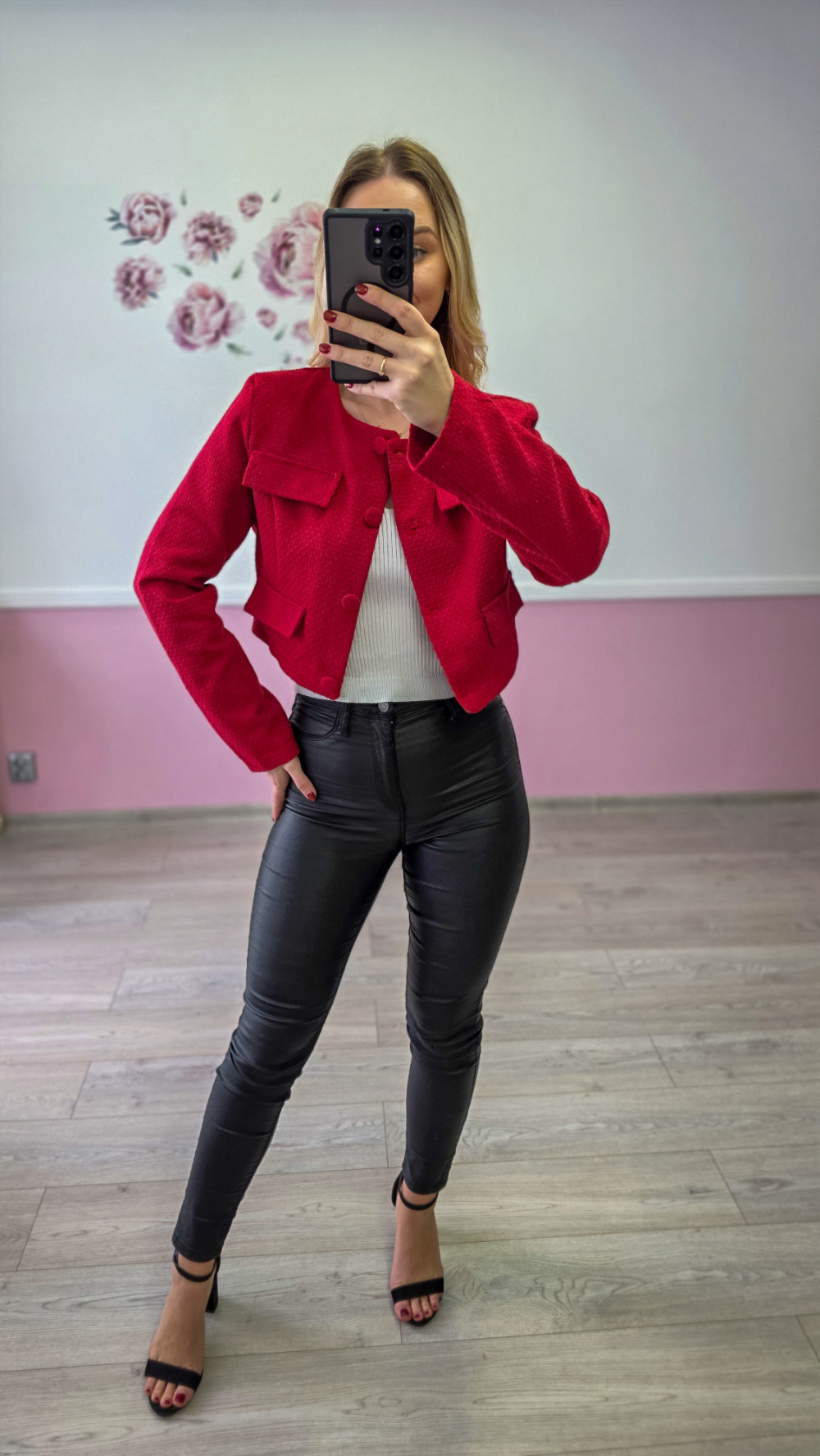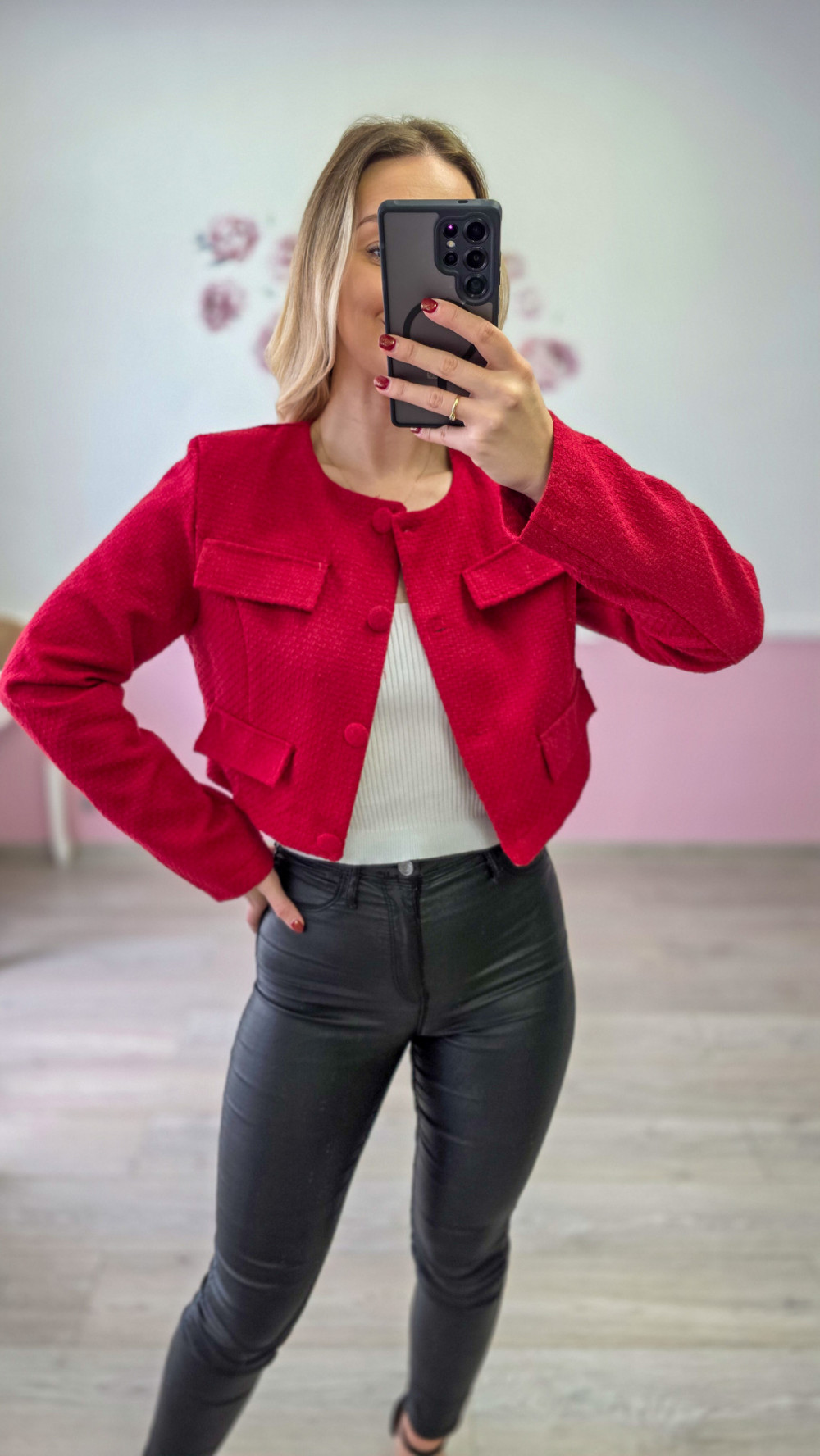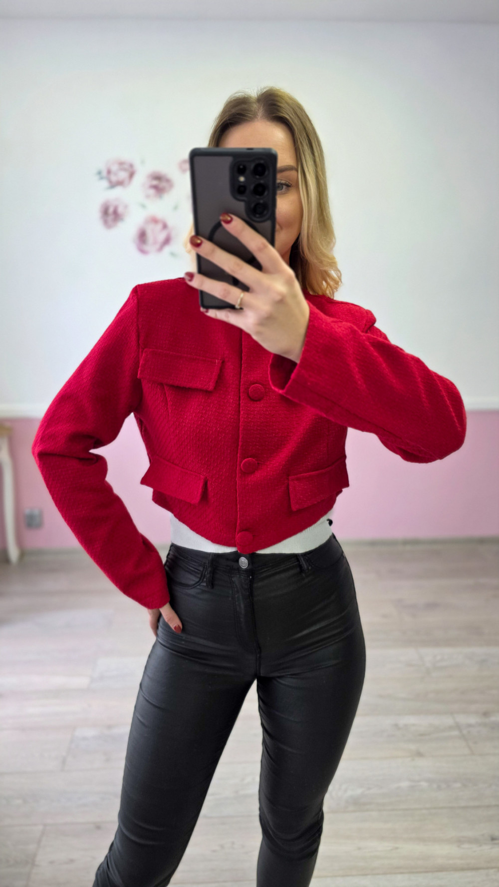 Czerwona krótka marynarka damska elegancka