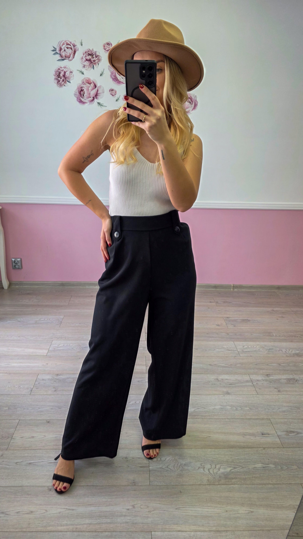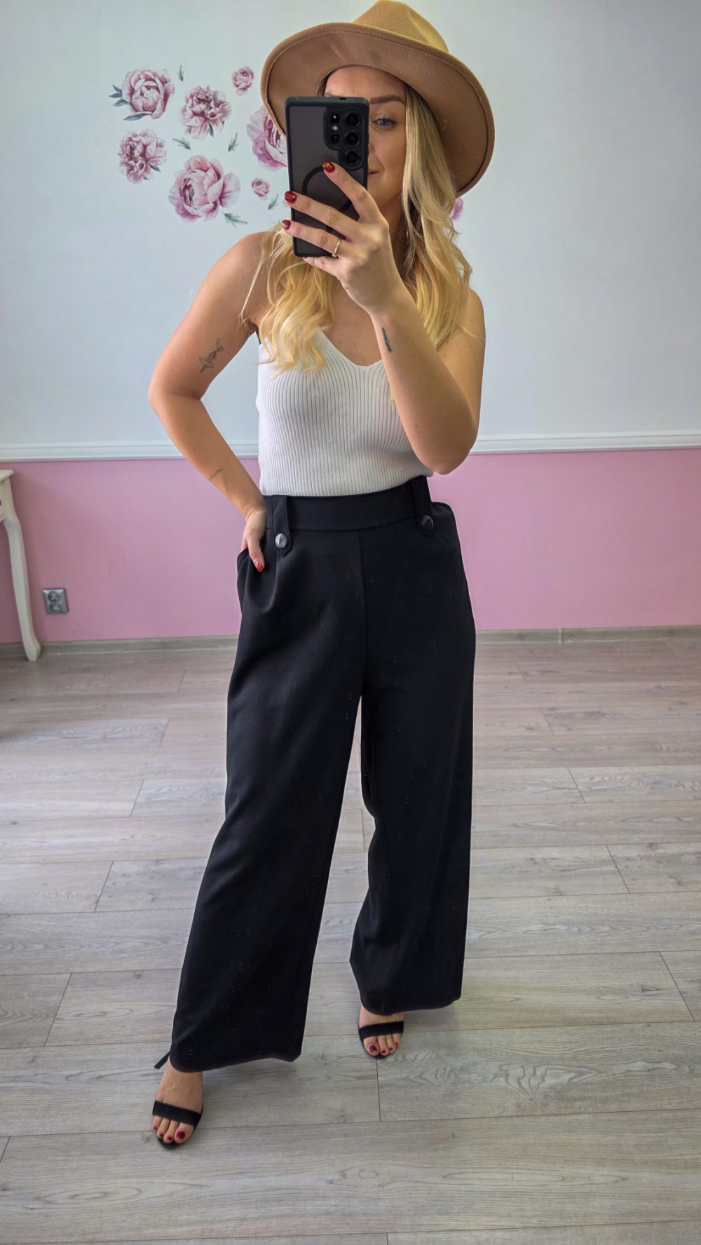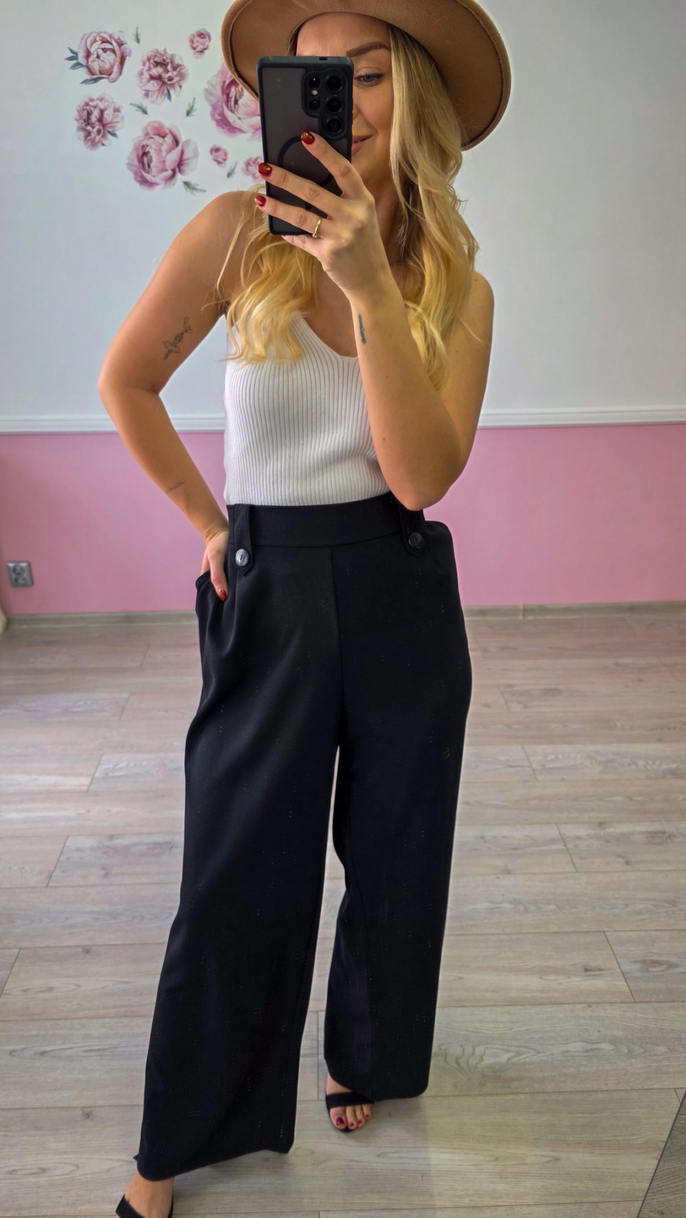 Czarne damskie spodnie z szeroką nogawką